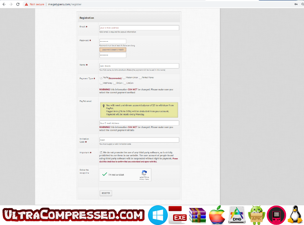 How to register at Megatypers using invitation code?