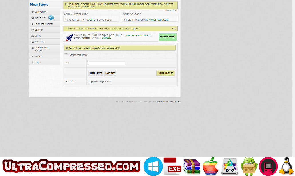 - After that there is a Typer Solver – get faster images (so you earn Typer Credits faster) and more often solve higher paying images (such as Smart CAPTCHAs and puzzle CAPTCHAs).